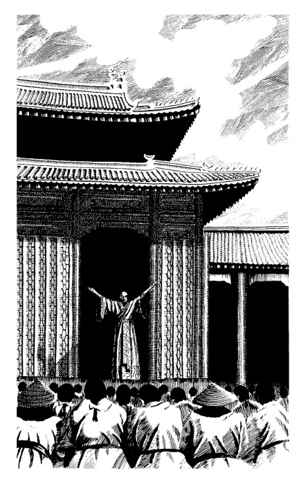 Priest of Arn addressing worshippers at the Altar of Earnest Entreaty in Traole