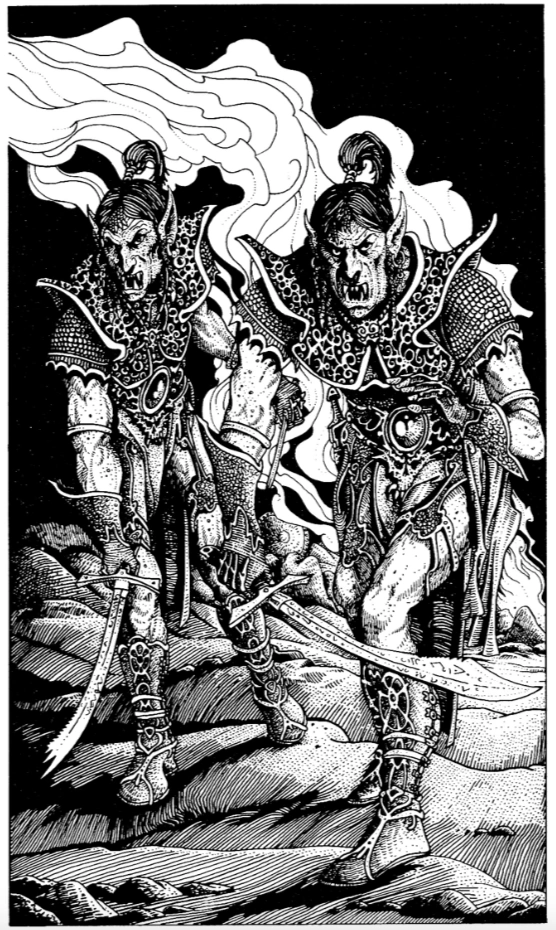 Blackhearts were usually employed as scouts and shock troops in the armies of Evil. Their weapon of choice was the jagged scimitar or a long-ranged bow.