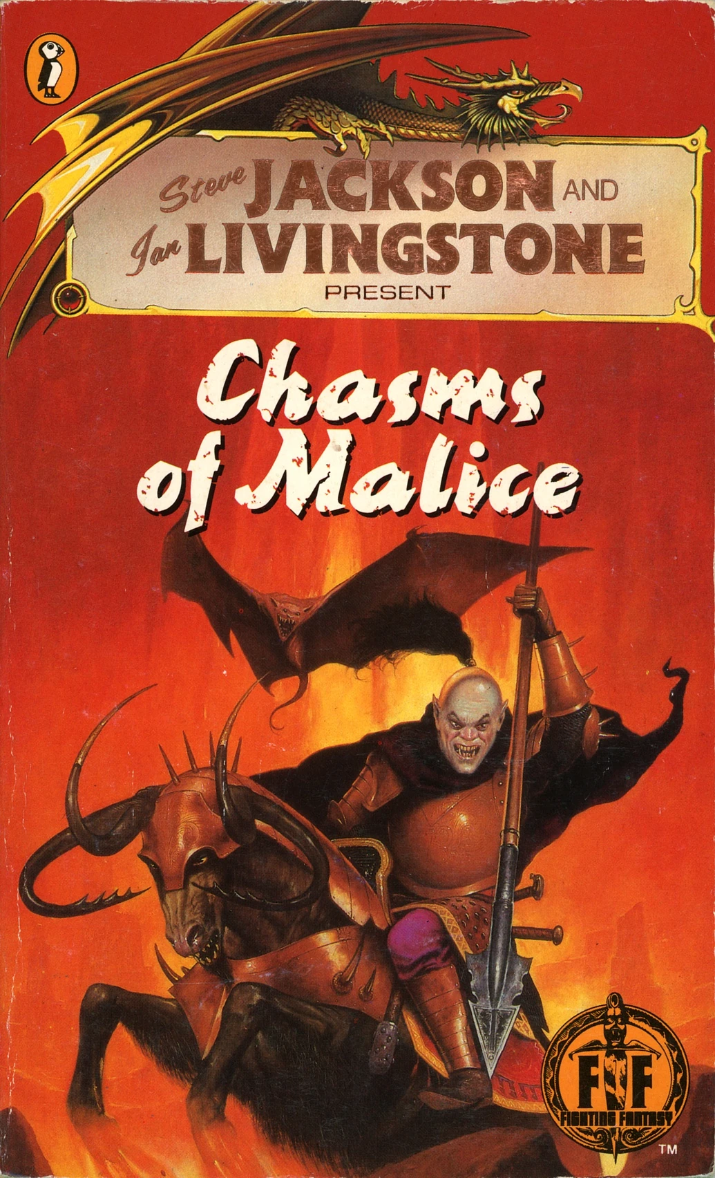 Chasms of Malice is a single-player role-playing gamebook written by Luke Sharp, illustrated by Russ Nicholson and originally published in 1987 by Puffin Books. It forms part of Steve Jackson and Ian Livingstone's Fighting Fantasy series. It is the 30th in the series in the original Puffin series (ISBN 0-14-032475-5). There are currently no announced plans to republish this book as part of the Scholastic series.