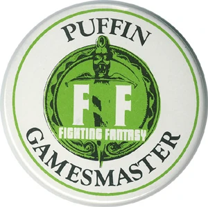 - Fighting Fantasy Badge: This was a pin on badge which was circular at the centre of which was the Fighting Fantasy Logo. Surrounding the Logo were the words "Puffin Gamesmaster".