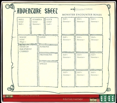 - Adventure Sheet Pad: This contained between 40 and 50 sheets, each of which was a replica of the standard Adventure Sheet contained within the books.