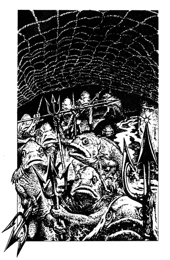 In battle, most fish men fought with spears, tridents or javelins.[1]