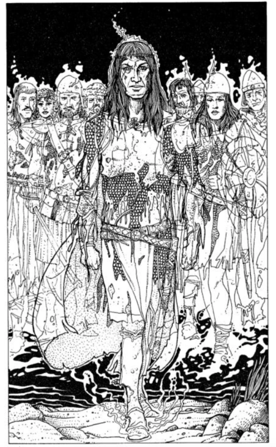 Galrin's spirit did not depart, however, and like all those souls killed by the kraken, he became a ghost, cursed to haunt the lake in a spectral form until the kraken was killed. With the beast's death at the hands of the Monarch of Arion, the ghosts were released. Galrin, their leader, offered to repay the debt the ghosts owed to the Monarch.[1] When called upon - this was done by simply uttering aloud Galrin's name[2] -, they would come to the aid of the Monarch upon the quest to slay Morgana, and then be released to the afterlife.[3]