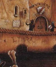 The peasants of The Shamutanti Hills also venerate Libra - there is a small temple to her in Birritanti.[4] Although a notorious place of crime, deprivation and lawlessness, Kharé has a small population of people who still turn to Libra, perhaps in desperation. The symbols of their faith in this goddess can be seen in graffiti found on buildings and river walls.[8]