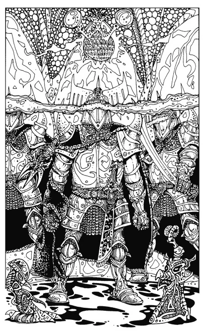After a number of years of friendly relations the Gaddon came under attack by an ancient Evil, the name they gave to which was simply "The Malice". Tancred and his brother offered their help to the Gaddon who had prepared for each of them the Twin Swords of Light. Wearing these as well as their famous Diamond and Glass Armour, Tancred and Orghuz mustered their forces and bravely set about fighting the forces of the Malice, led by the mighty Khuddam.