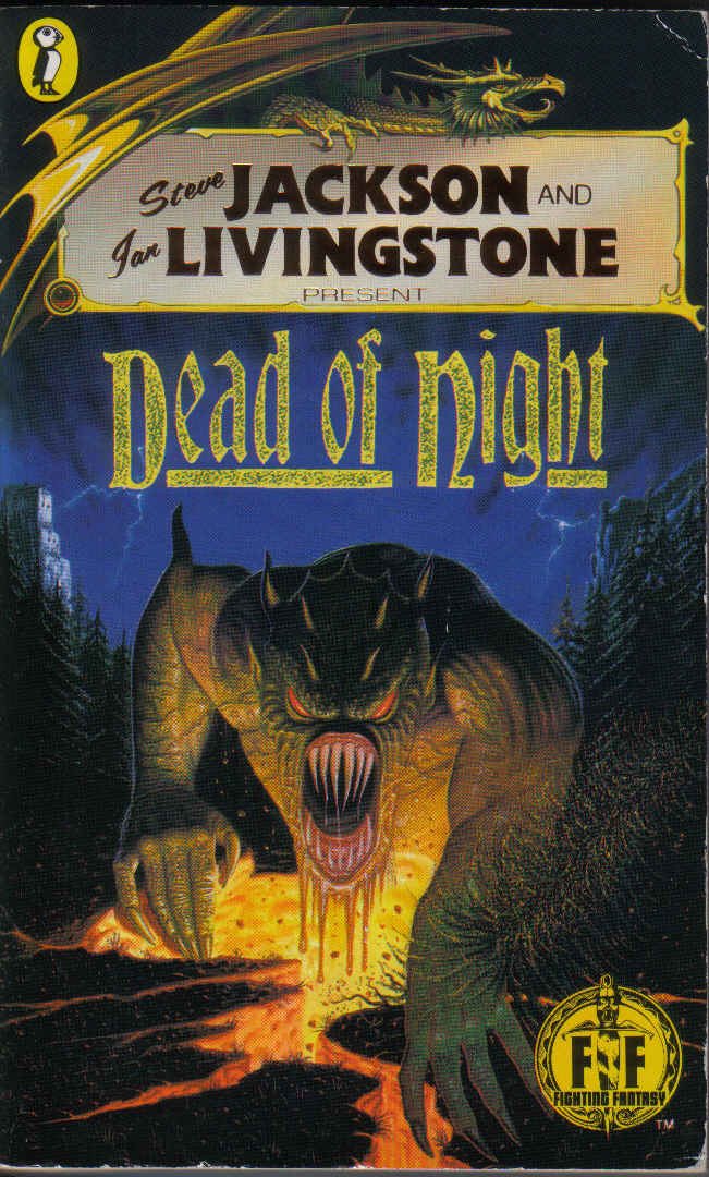 Books with this final Puffin cover design featured some slight changes during this period (1987 to 1995). At first the number of the book was printed on the front and spine of each book, till in 1989 the range was reprinted where all numbers were removed from the books (including the list on an inner page) alongside new books Portal of Evil, Vault of the Vampire, and Fangs of Fury. After this short-lived change, the number of the book returned to the spine of each book and the inner page list, but not the cover from Dead of Night (1989) onwards. The cover credit was printed in bronze-foil until the publication of the 52nd book (Night Dragon) in 1993, from which point it was not printed in foil (and the back catalogue of titles re-issued again to match).