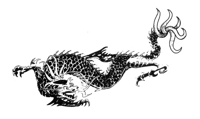 A Tatsu had a lizard-like head covered in horns, and a body covered in shining scales which were golden, silver, red and green in colour. There were two types of Tatsu, the Lesser Tatsu and the rarer, more powerful Greater Tatsu.[1] The Tatsu described themselves as being "bound by celestial laws". [2] A Tatsu could fly despite lacking any wings.