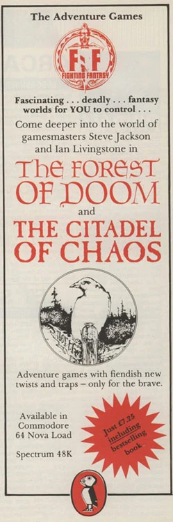 This game was advertised along with the conversion of the The Forest of Doom at the end of 1984. In the November 1984 issue of Computer and Video Games magazine it was shown as being available for "Just £7.25 including bestselling book". Like The Warlock of Firetop Mountain before it, it had two styles of release, one with just the game, the other within a Software Pack which included both the "thrilling adventure game" as well as the "original bestselling book". It was to be available for both the Commodore 64 and ZX Spectrum platforms.
