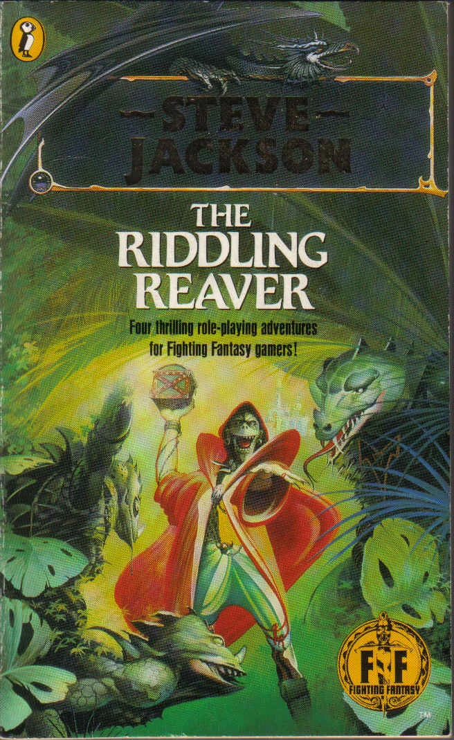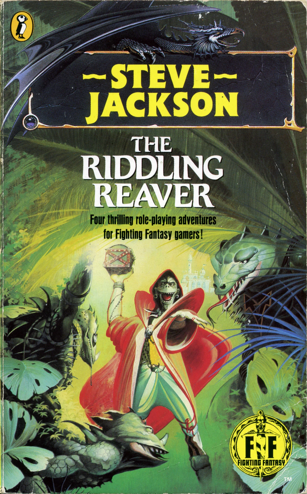 The Riddling Reaver is a multi-player role-playing gamebook written by Paul Mason, Steve Williams, and edited by Steve Jackson, illustrated by Brian Williams and Leo Hartas and originally published in 1986 by Puffin Books. It forms part of Steve Jackson and Ian Livingstone's Fighting Fantasy series. It was not part of the main Fighting Fantasy gamebook series, but rather one of the many spin-offs. As a role-playing gamebook, it is most closely associated with the book Fighting Fantasy - The Introductory Role-playing Game in that it is an attempt to extend the Fighting Fantasy concept into a more developed role-playing system, in a basic form. As such, it is an unnumbered addition to the Puffin series (ISBN 0-14-032156-X), often grouped with Fighting Fantasy - The Introductory Role-Playing Game in book listings. There are currently no announced plans to republish this book as part of the Scholastic series.