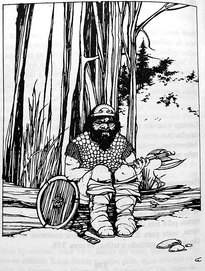 Trumble was probably typical of his home town of Mirewater in his hatred of Stonebridge and his unfriendliness to outsiders.[1] He was a hardy old fighter, dressed in an iron helmet and chain mail coat, and wielding an axe.[2]